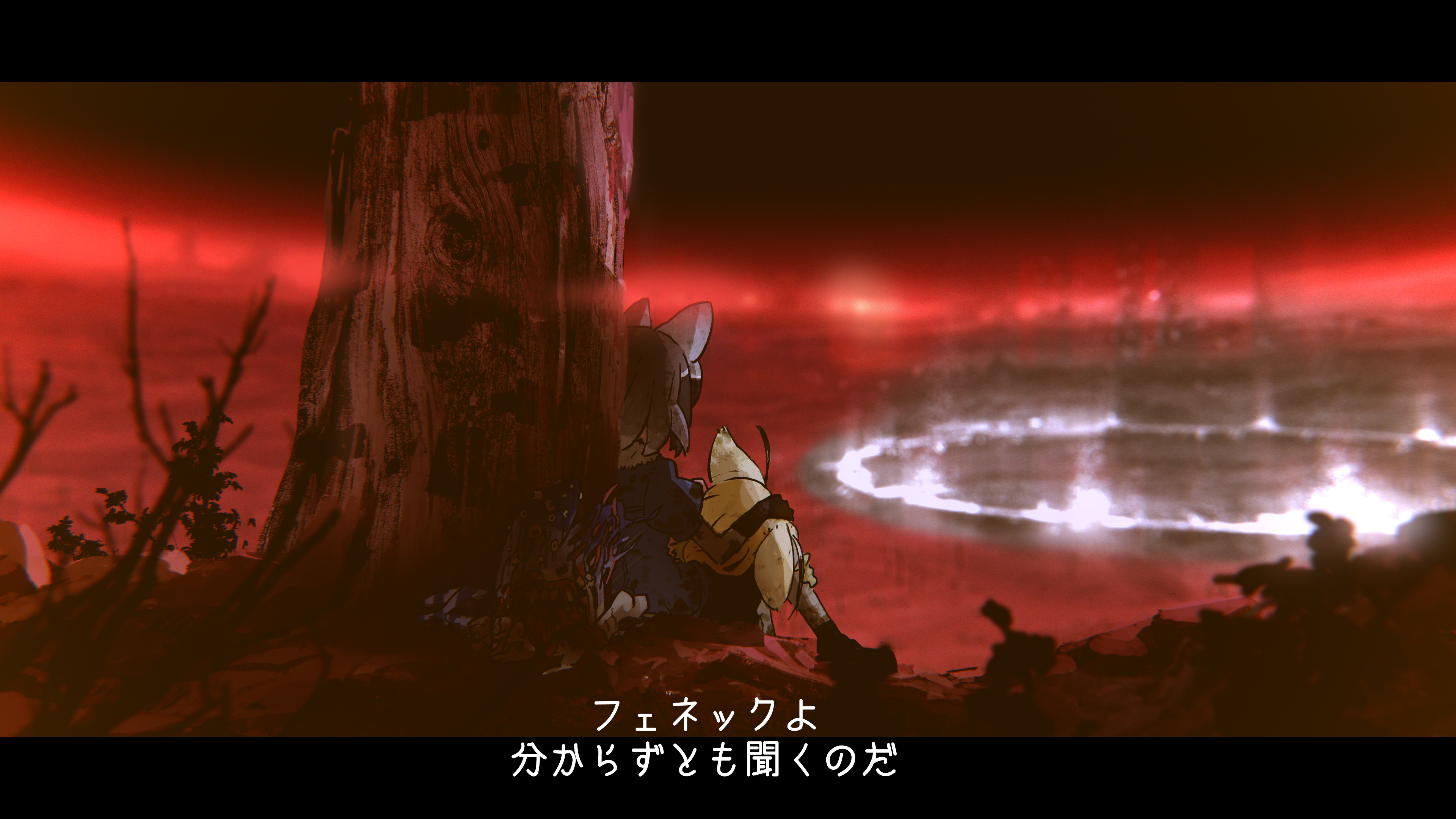 Raccoon-san(rightmost bubbles): Ah? He-Hello? You are a friend noda! Hello! What are you doing here noda? :(fas fa-grip-lines-vertical):Serval(middle bubbles): I don’t know where my floor is anymore… I’ve been going down and down but now I’m taking a rest. :(fas fa-grip-lines-vertical):Raccoon-san(right bubbles): That’s a big problem noda… Do you want Raccoon-san to help you?Serval(left bubbles): Ah, no, it’s fine. When I see my own floor I’ll know it right away.Raccoon-san(leftmost bubbles): Is that so noda…text in floor 4: