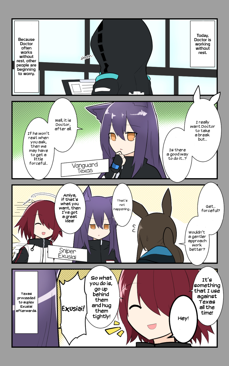 A comedic slice of life manga about operators in the Rhodes Island Pharmaceutical, Inc.