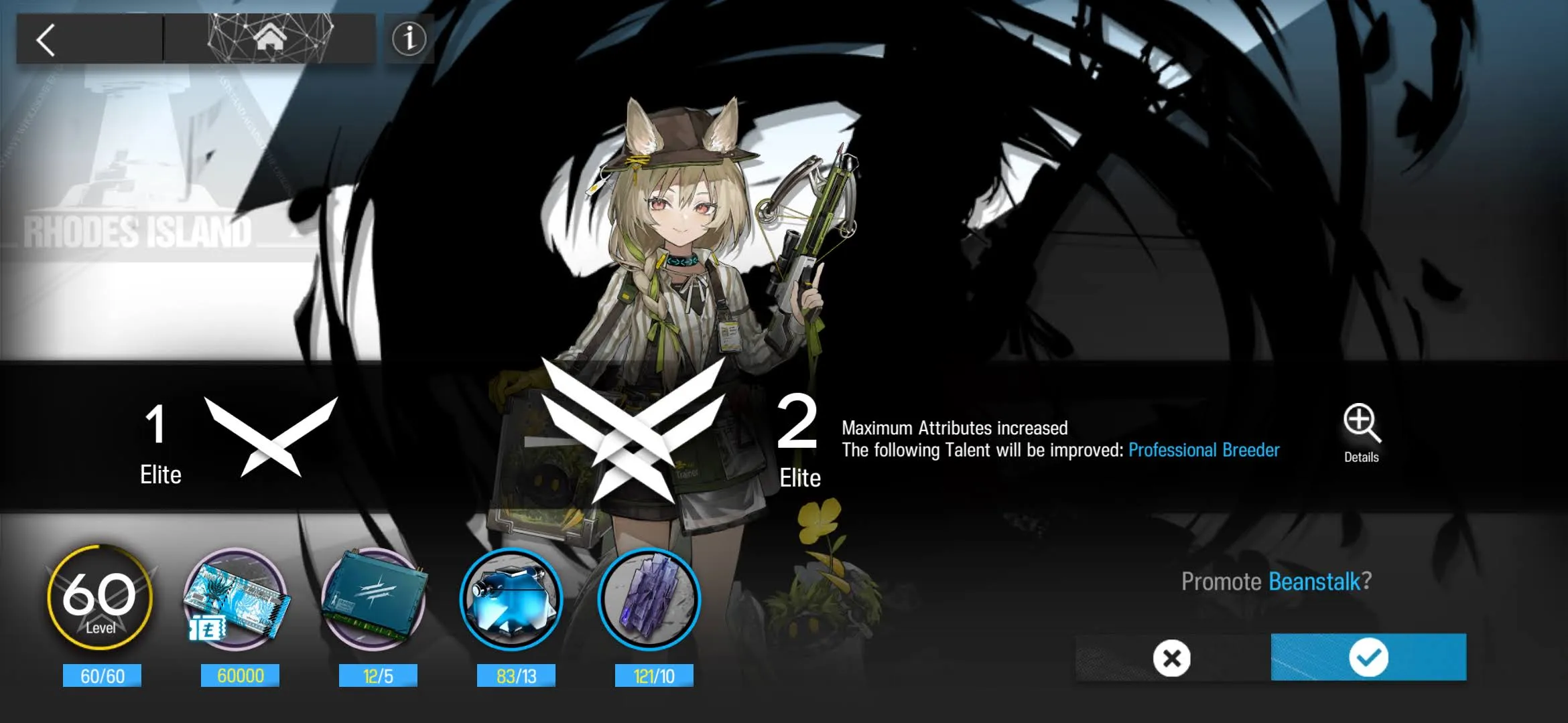 Since her debut on The Wheat and the Anthem banner (featuring Chiave, Beanstalk, Iris, Archetto), Beanstalk has been one of my favorite operators I want to acquire . However, I miss out on the opportunity to have her because I initially ignored that banner, and she has avoided me ever since. I recently acquired her through the Pallas banner. And she’s fantastic, I was so astounded by her performance that I promoted her to E2 right away.