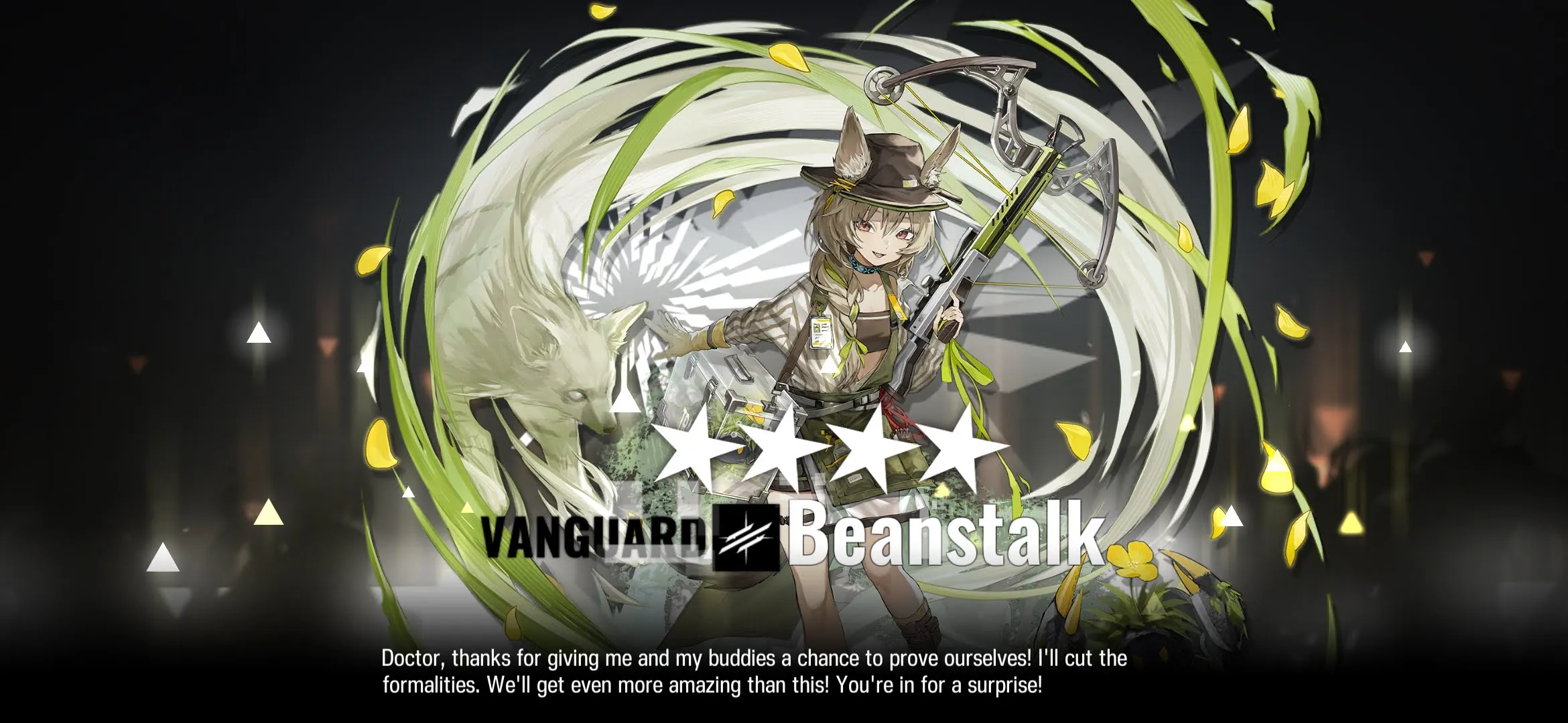 Beanstalk is a DP-on-skill vanguard, with skills that generate DP much like Courier, Scavenger, and Texas. Just like other vanguards, she helps hold the line early on during stages - however, there’s a twist. Beanstalk is a ranged operator (with the same range as AA Snipers), and she doesn’t do any blocking. Her summons do.