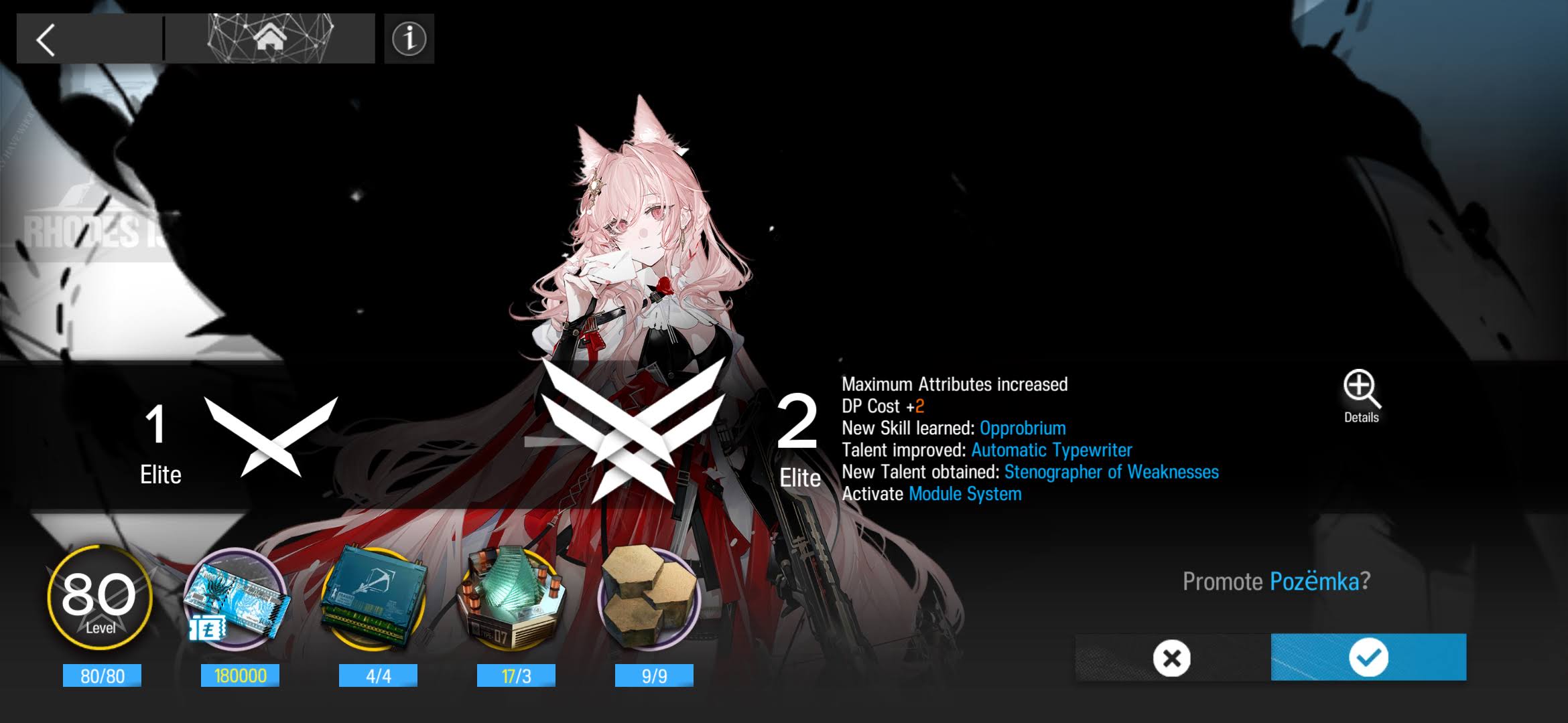 Pozyomka is a Heavyshooter Sniper who utilizes her skills and summon to deal high amounts of damage at a medium range in a straight line ahead of her. Her range is already quite flexible for the damage she offers, but she’s also capable of placing a Typewriter to engage enemies from any deployable ranged tile, making for an easy-to-set-up duo. With proper positioning, she and her summon can deal with even high-priority targets relatively quickly thanks to high multipliers and a powerful DEF debuff.