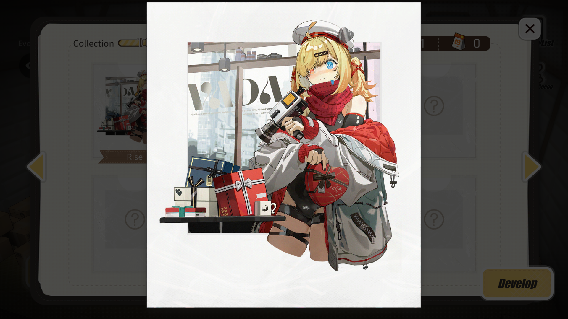You may use [Imaging Cocoa Powder] to get memento photographs and unlock limited event stories with the Dolls during the event. Each unlocked story awards a piece of “Painting” furniture.