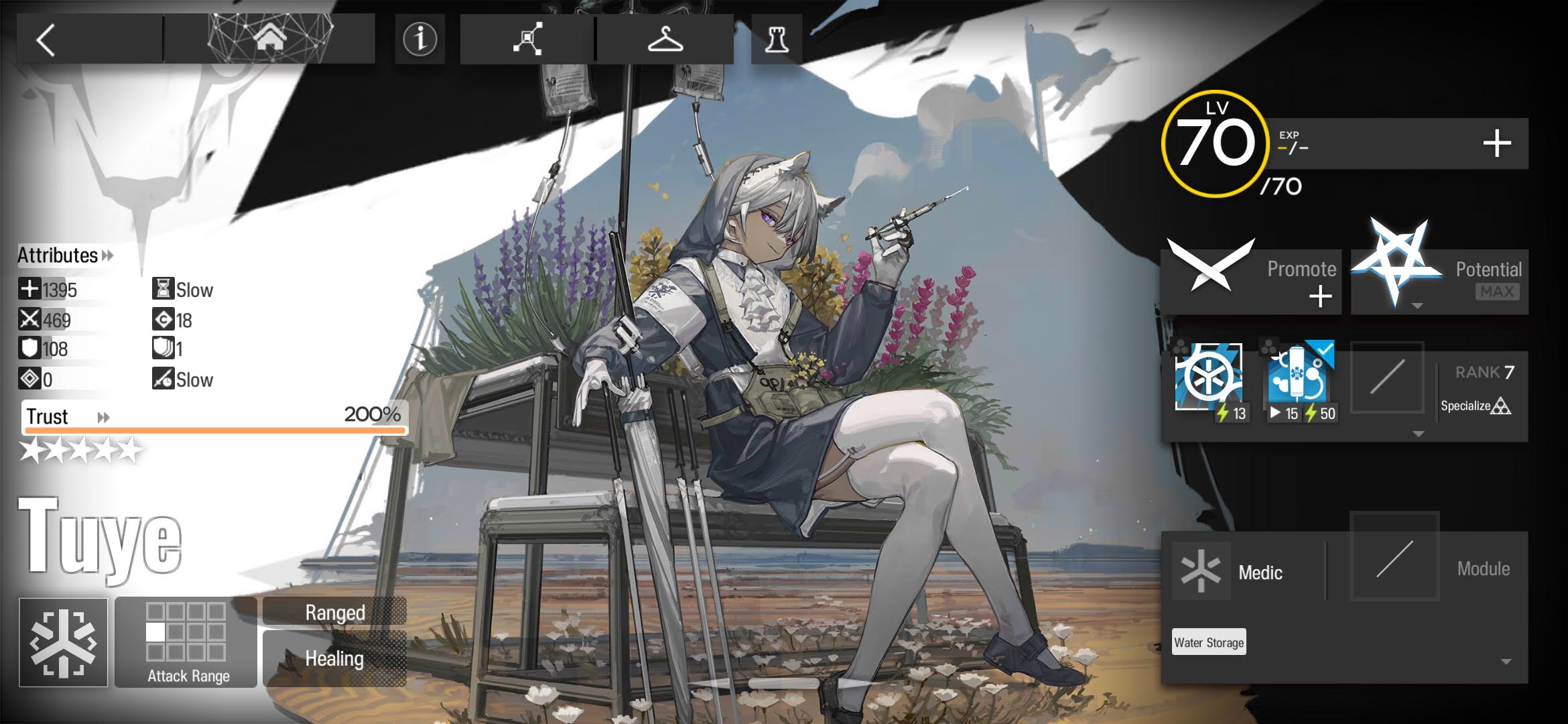 Tuye is good though, you can think of her like Saria S1 which you don’t waste healing on chip damage. I’m using Tuye a part of Healer team for permanent Surtr S3, for example.