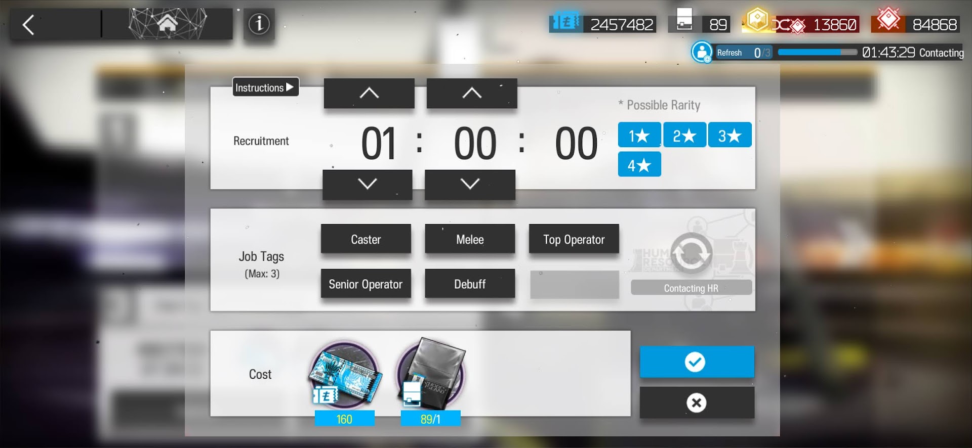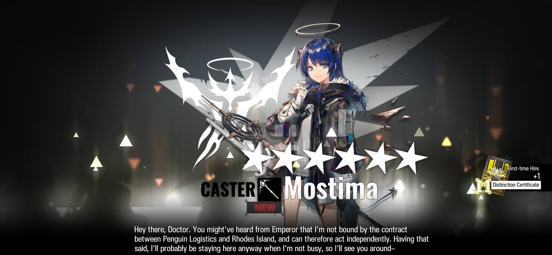 I got a Top Operator + Senior Tag + Caster + Melee + Debuff. Since I’ve already had all operators under Melee Tag, I gambled for Caster + Top Op for 50% chance to get Mostima (a dupe Ifrit is not bad). And then, I have Mostima now.