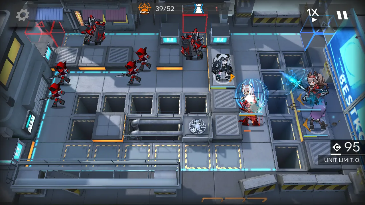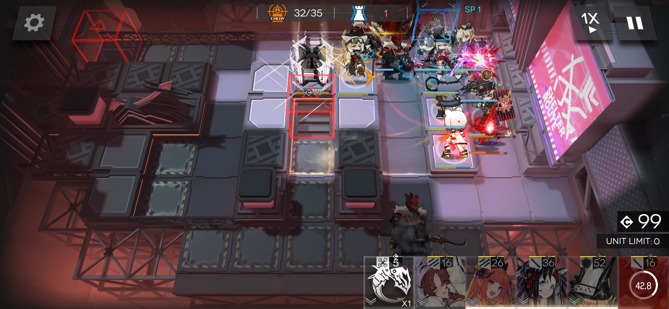 After that, I implemented another strategy that is about occupying the first Gramophone. Specter S2 + Lappland S2 (for silence Dock Worker’s stun) are on top lane, and Pallas is on lower lane.
