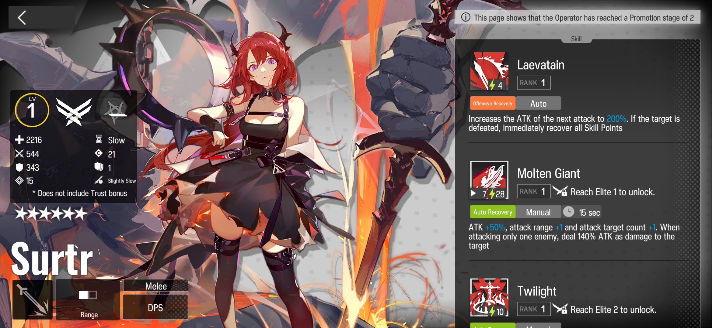 Although I could have chosen another option, such as Passenger, because Surtr will be available in store around November, however, there will be so much content between now and then that having Surtr and raising her earlier has many advantages.