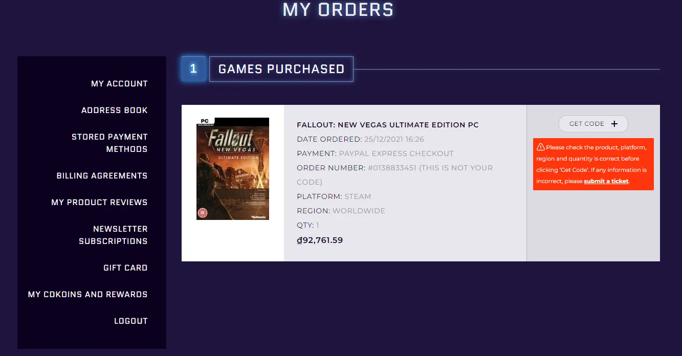 I purchased Fallout New Vegas: Ultimate Edition from cdkeys after comparing prices at gg.deals. Rather than purchasing it directly from Steam this time, Cdkeys offered the best price.