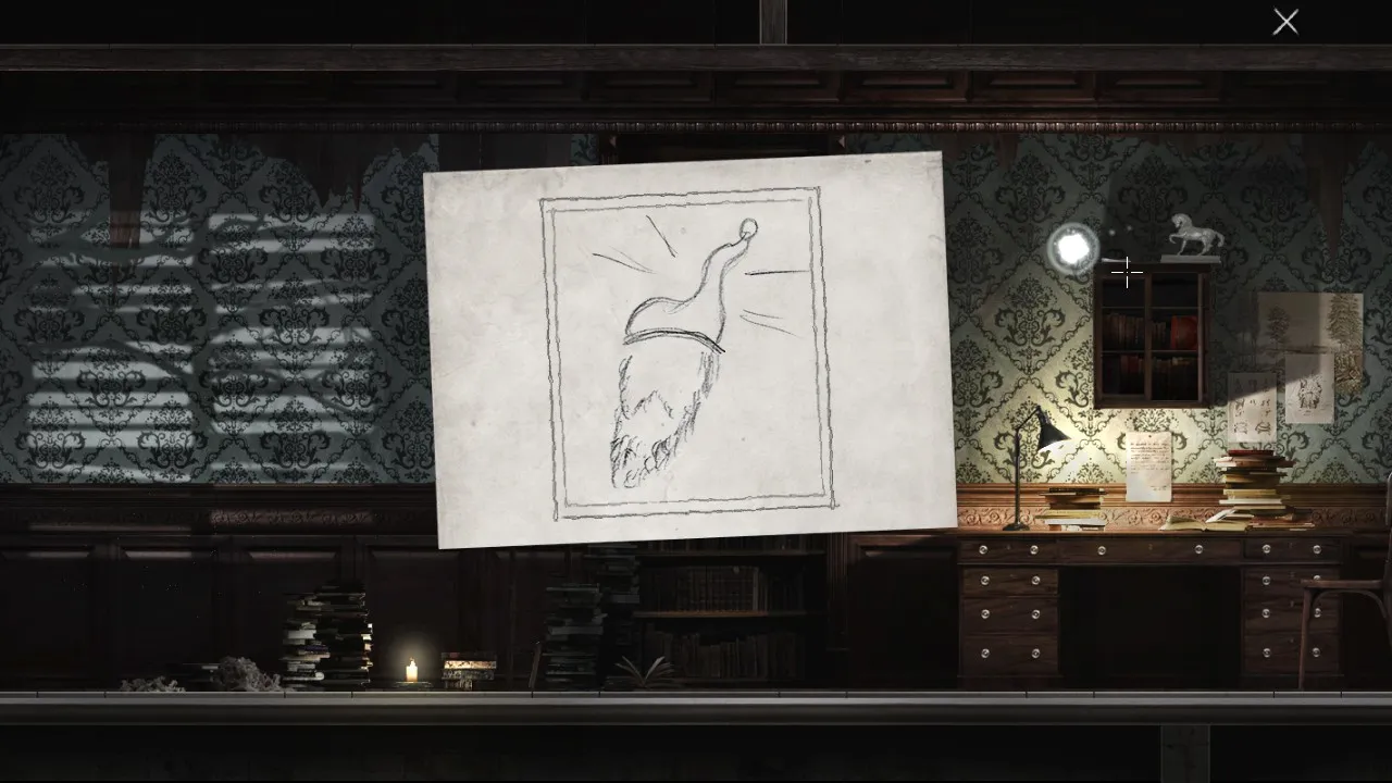 - Go to the Office room with Horse statue on top of a cabinet. Move the horse to reveal a paper beneath.