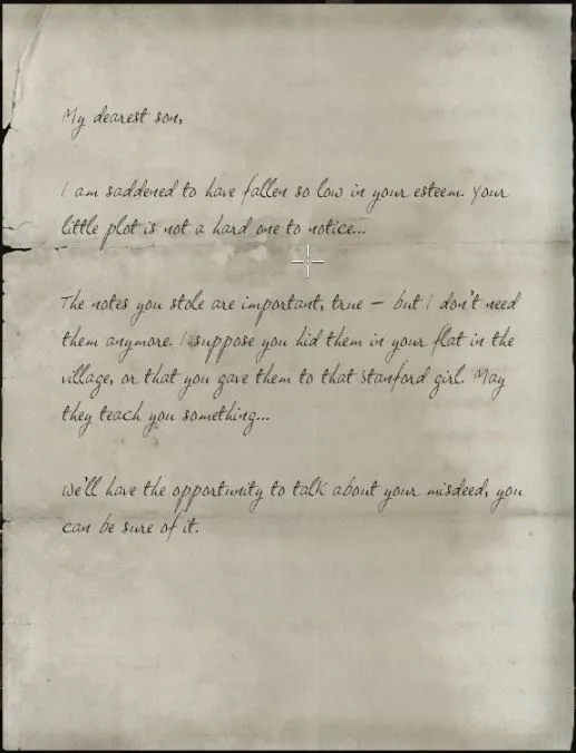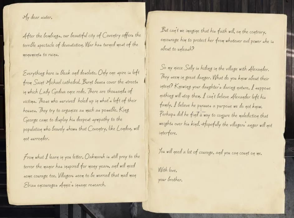 Codex: My dearest son letter. Oakmarsh village now accessible.
