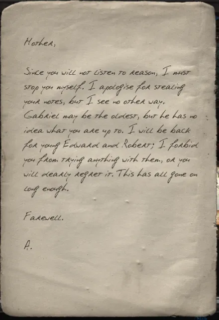 Codex: Note to Alexander from Annie.